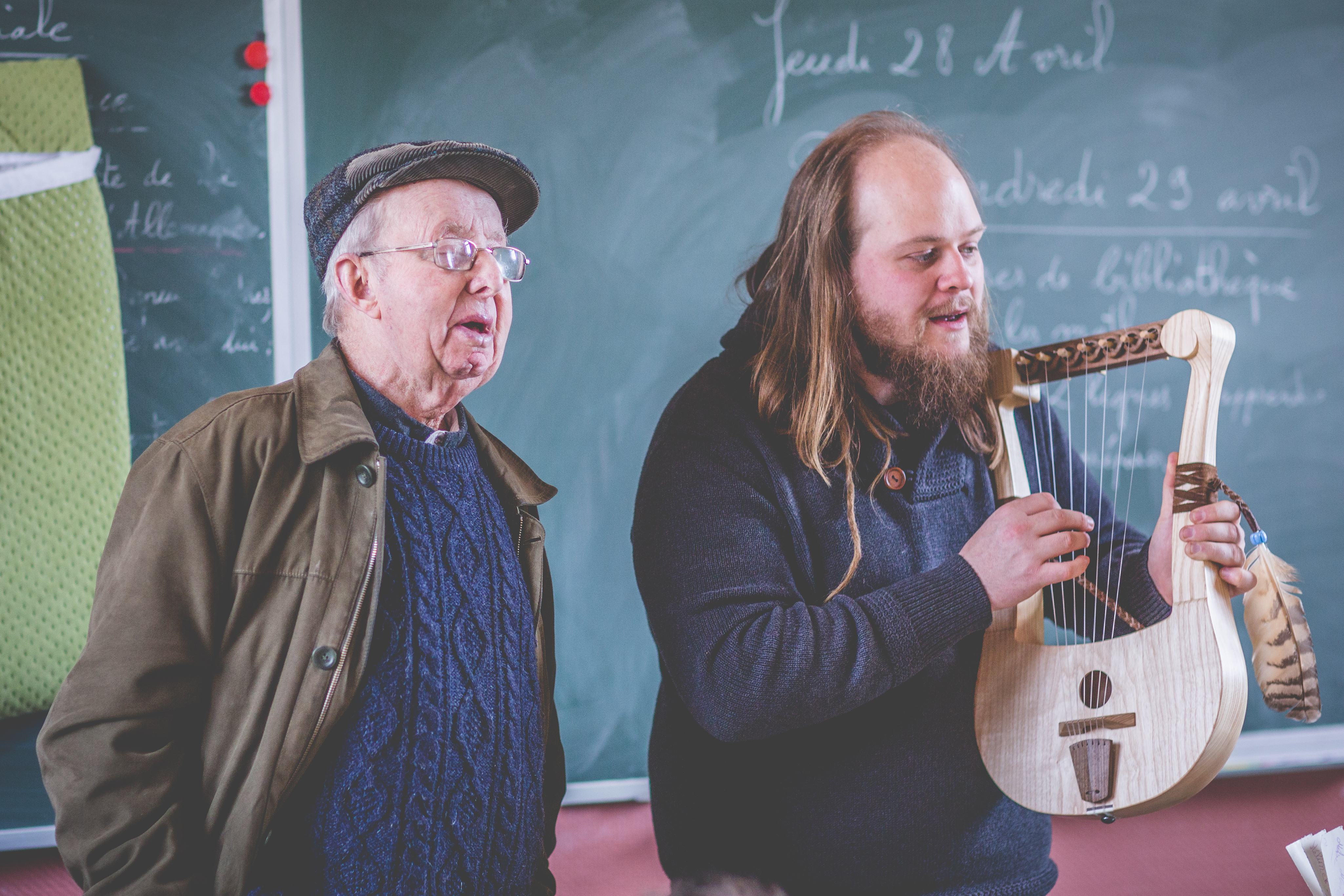En parallèle de leurs recherches et de leur production d’instruments à l’atelier de lutherie, Julian et Audrey enseignent la pratique de la lyre pendant trois années au sein du département traditionnel d’un conservatoire du centre de la Bretagne. À cette occasion, ils développent une pédagogie originale ainsi qu’un système de tablature inédit entièrement dédié à la lyre, avec lequel de nombreux élèves progressent rapidement. Soucieux de destiner ce système de tablature à toutes les lyres, Julian et Audrey ont développé une méthode d’accordage adaptative qui permet à chacun de jouer les tablatures avec son instrument et d’apprendre à son rythme.