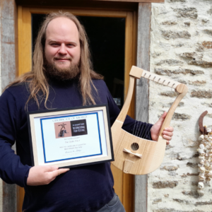 Julian Cuvilliez et Audrey Lecorgne sont luthiers, spécialistes de l’archéologie expérimentale. L’Atelier Skald produit chaque année des instruments sur commande destinés à des artistes du monde entier, ainsi qu’au parcours permanent de musées tels que le Musée National de Cologne en Allemagne ou Breizh Odyssée en Bretagne. Depuis plus de 20 ans, Julian et Audrey comptent parmi les rares professionnels à se spécialiser exclusivement dans la production de lyres de l’Antiquité et du Moyen Âge.