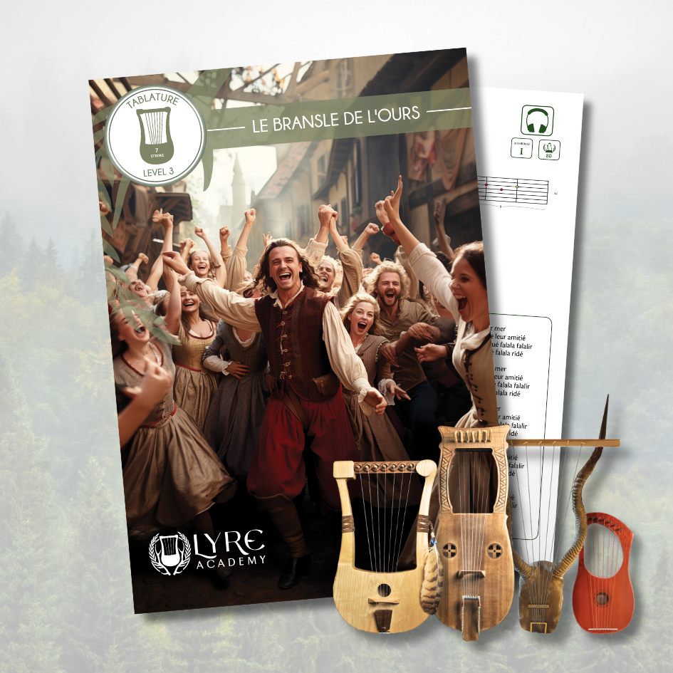 Découvrez « Le Bransle de l’Ours » avec cette tablature spécialement créée pour les lyres à 7 cordes par la Lyre Academy ! Interactif, ce document vous offre l’opportunité d’écouter une version enregistrée de cette musique afin de vous permettre d’affiner vos interprétations.