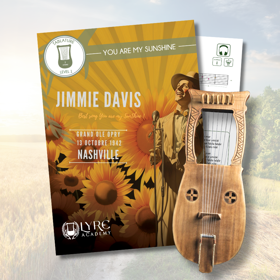 Découvrez « You Are My Sunshine » avec cette tablature spécialement créée pour les lyres à 7 cordes par la Lyre Academy ! Interactif, ce document vous offre l’opportunité d’écouter une version enregistrée de cette musique afin de vous permettre d’affiner vos interprétations.
